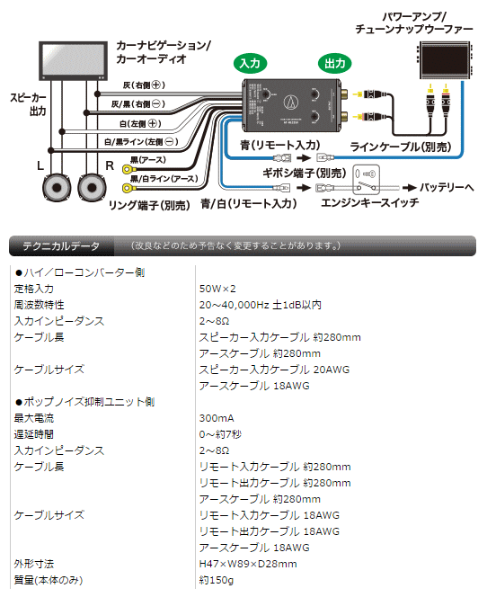 ヘッドユニットの出力を高品質ユニットのように変化させる超高音質ハイローコンバーター。